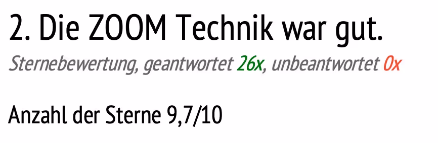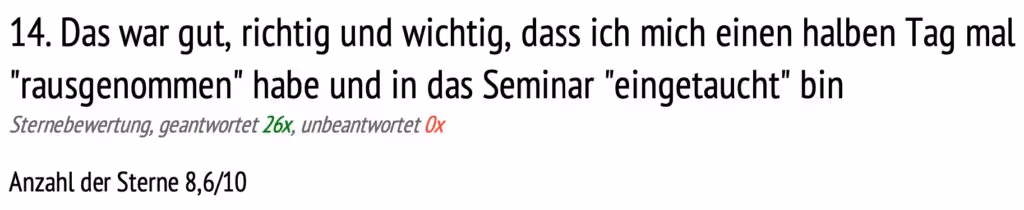 "Vielen Dank fuer dieses aktive Webinar. Dadurch war es sehr lebendig und die Zeit verging wirklich wie im Flug. TOP !"