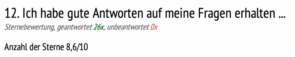 Auszug aus den finalen Ergebnisses der SURVIO Umfrage (26 Teilnehmer an der Umfrage):