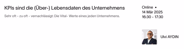 Es geht online los am 14. März 2025 - 16.30 h - 17.30 h. Ulvi I. AYDIN berichtet über die so oft unterschätzene Kraft von KPIs in und für Unternehmen.