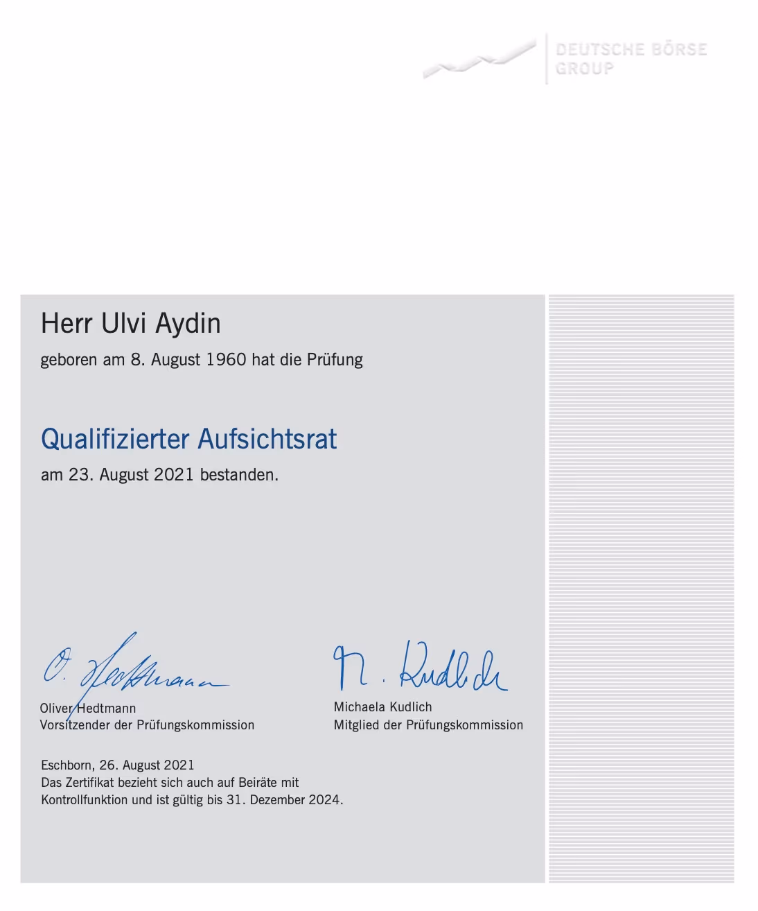 Happy! Proud! Exhilarated! To be certified "QUALIFIZIERTER AUFSICHTSRAT" der DEUTSCHE BÖRSE GROUP