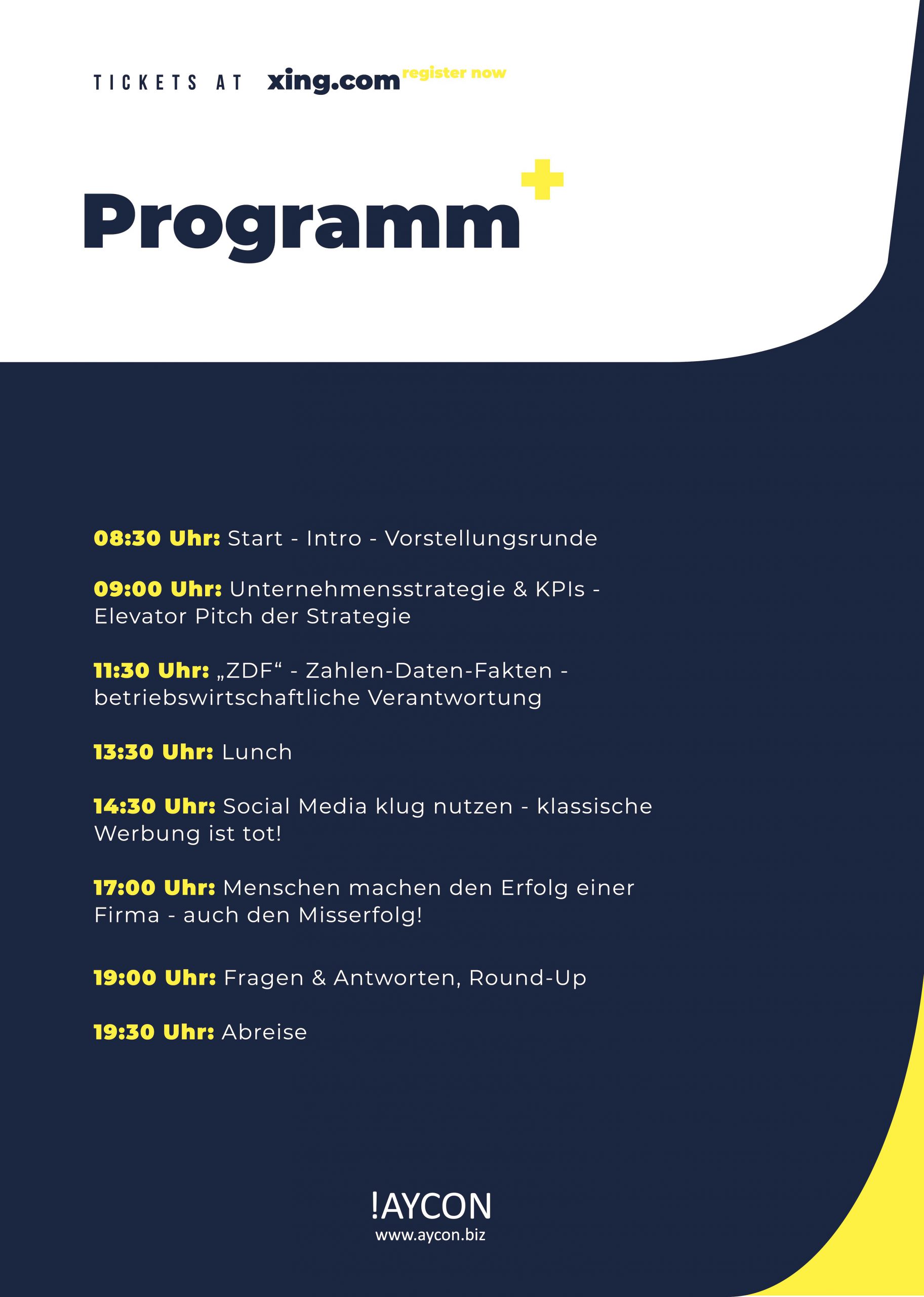 "Das !AYCON-Seminar „ Power Up - Der goldene Arschtritt für Manager!“ ist eine klare Empfehlung für Entscheidungsträger mittelständischer Unternehmen, die sich fachlich weiterentwickeln und ihr Netzwerk ausbauen wollen. Im exzellent vorbereiteten Seminar wurden Herausforderungen bei der strategischen Neu-Ausrichtung von Unternehmen identifiziert, Krisenstati in Ausdrücken von Zahlungsunfähigkeit und Insolvenz diskutiert und Kompetenzen für eine professionelle Nutzung von Online-Plattformen wie XING und LinkedIn vermittelt.Die handverlesenen Teilnehmer hatten in den Pausen und Welt-Cafés Gelegenheit, sich näher kennenzulernen und mit ihrem Portfolio zu präsentieren. All' das war klar am Bedarf der Manager ausgerichtet. Aber auch rundum hat einfach alles gepasst. Die Vorbereitung war erstklassig, ebenso wie Wahl des "Power Up!" Seminarraums und die Verpflegung vor Ort."