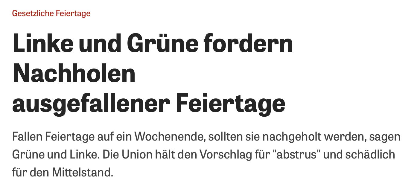 Deutschland diskutiert ernsthaft darüber, ob Feiertage, die auf einen Sonntag fallen, am nächsten Werktag nachgeholt werden sollen.